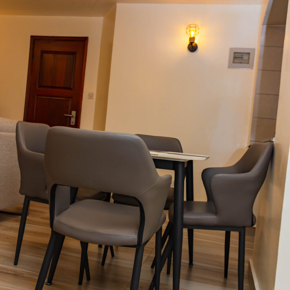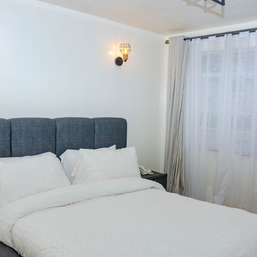 Our One-Bedroom Apartments are perfect for those seeking more space and privacy without compromising on modern comforts. These apartments are thoughtfully designed to cater to your living needs, ensuring a comfortable stay in the heart of Kilimani.